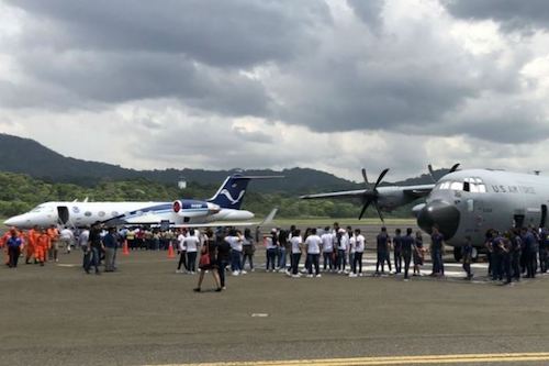 A las 2 de la tarde con 38 minutos aterrizó el Orion N42RF, uno de los dos aviones de este tipo que tiene la Administración Nacional Oceánica y Atmosférica de Estados Unidos, NOAA, por sus siglas en inglés.