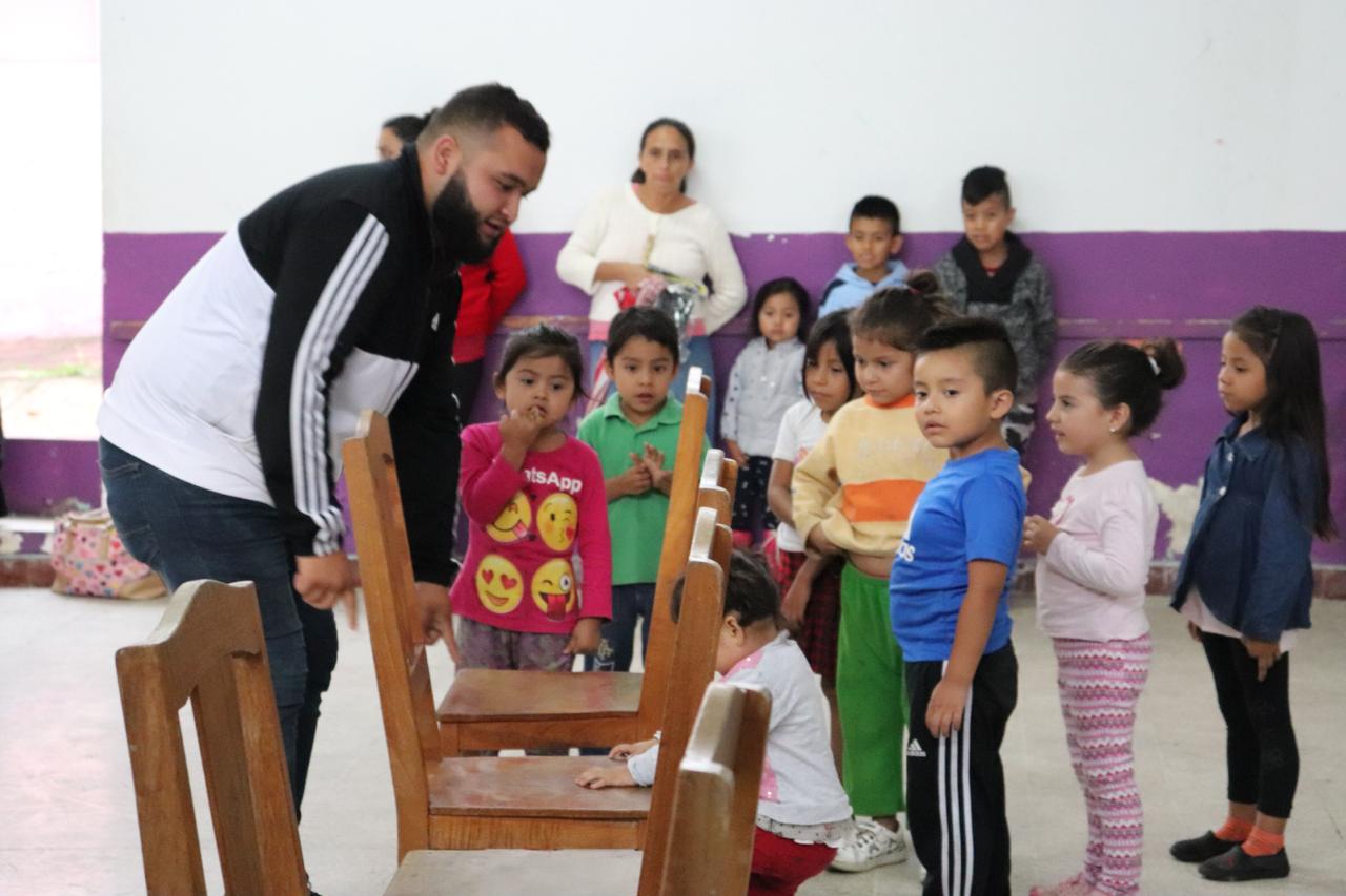 Decenas de menores acompañados de sus papas se dieron cita en el salón social de la localidad, quienes mostraron su emoción y alegría al participar en las diversas actividades, que gracias a las gestiones del joven Axel, pudieron disfrutar.