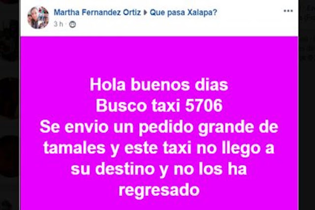 Podría parecer mentira, pero una mujer en Xalapa, Veracruz, estado de México, denunció en redes sociales que un hombre a bordo de un taxi se robó su olla con tamales.