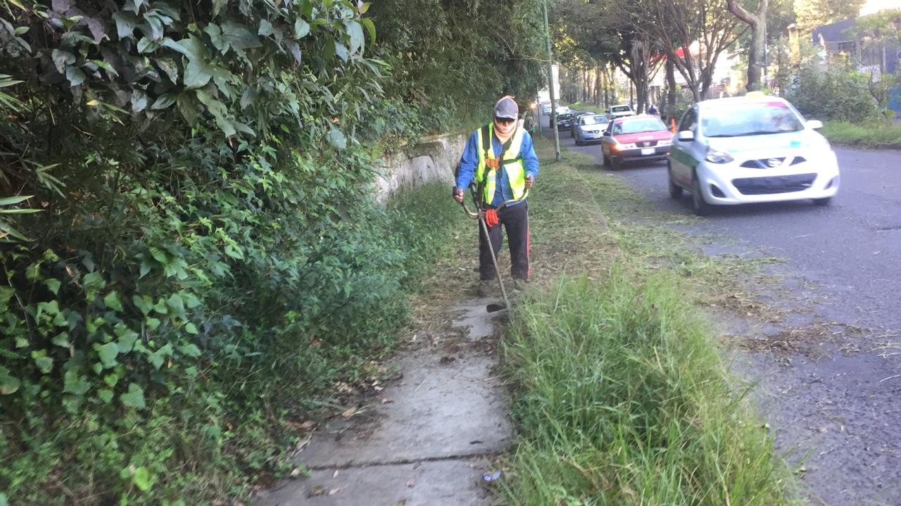 Con la finalidad de continuar con los trabajos de mantenimiento en las áreas verdes, el Departamento de Mantenimiento Ambiental de Parques y Jardines realiza actividades de chapeo y limpieza.
