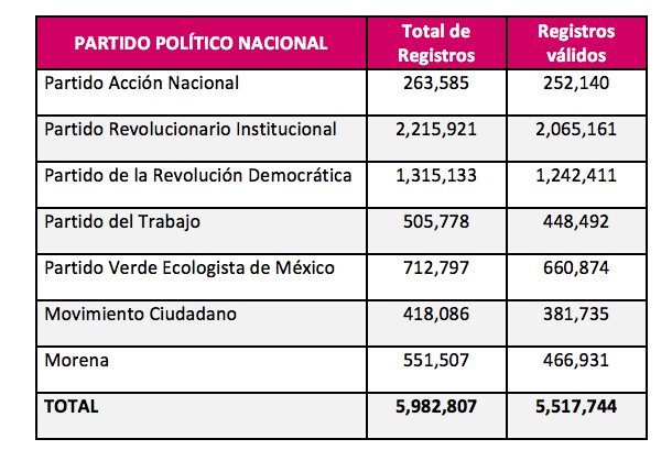 El documento concluye que “todos los partidos políticos nacionales cumplen con el registro de contar con el número mínimo de personas afiliadas para la conservación de su registro”.