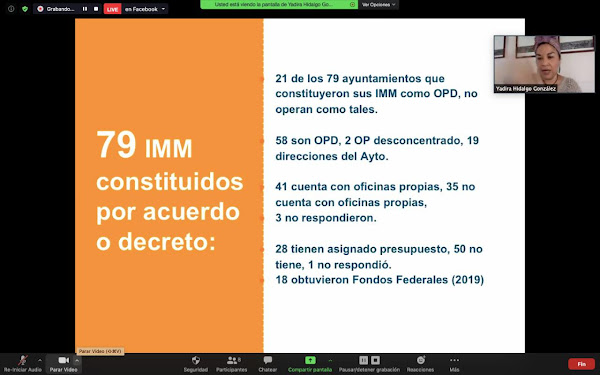 Finalmente desde la perspectiva local, la Directora del Instituto Municipal de las Mujeres de Xalapa, Yadira Hidalgo González mencionó que el municipio es el ente que encuentra más resistencia para la perspectiva de género motivada por la ignorancia y la confusión sobre el trabajo de los Institutos municipales de las mujeres, lo que deriva en que no se les asignen recursos por sentir que no entregan resultados; ante lo que mencionó que “el desconocimiento no exime de la obligación y de la sanción legal que exista por ello”.