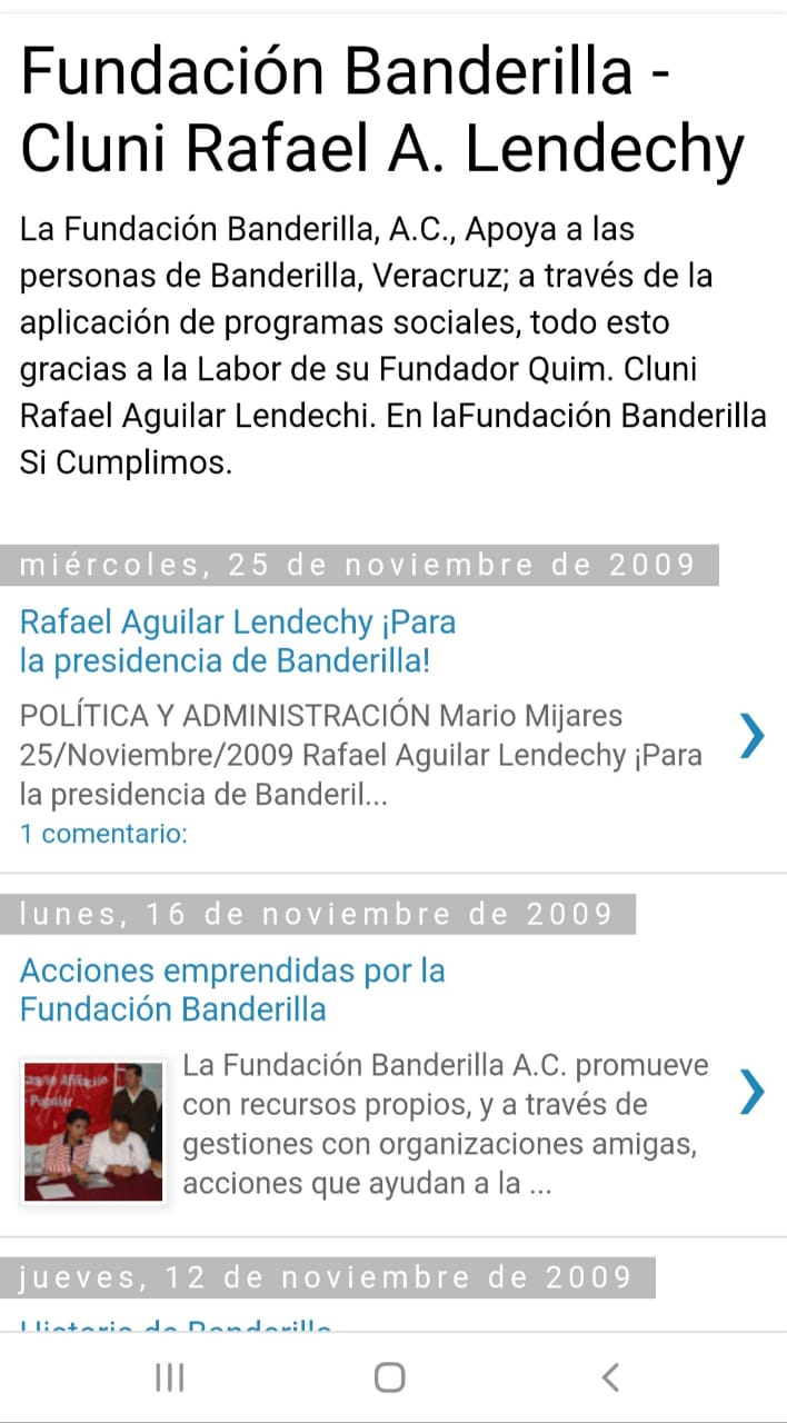 Es imposible que un tipo con esta reputación todavia continúe desviando dinero y pidiendo apoyos para su uso personal a través de su fracasada Fundación Banderilla, A.C., que dice"apoya a las personas de Banderilla, Veracruz; a través de la aplicación de programas sociales, todo esto gracias a la Labor de su Fundador Quim. Cluni Rafael Aguilar Lendechi. En laFundación Banderilla Si Cumplimos".