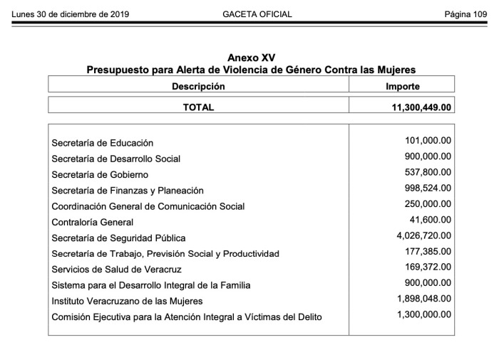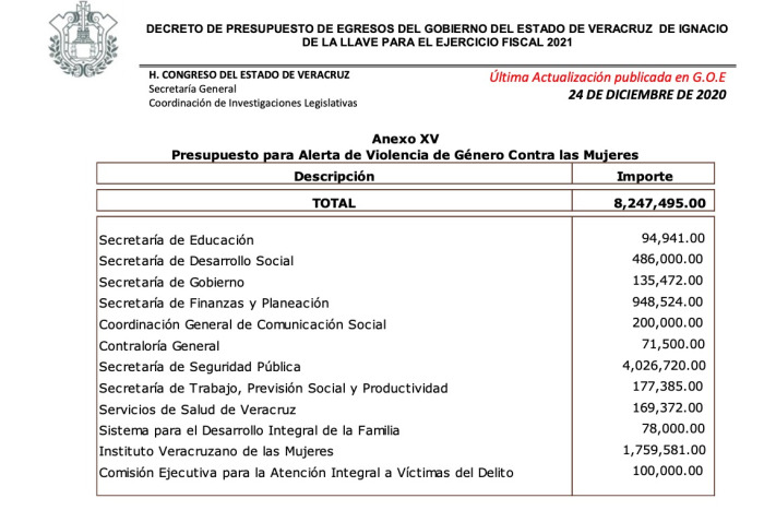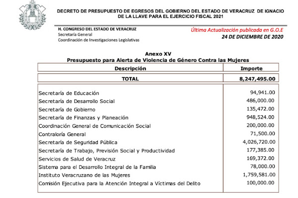 A pesar de la continua violencia contra las mujeres en el estado de Veracruz, la cantidad de dinero dedicado a la Alerta de Violencia de Género disminuyó este año.