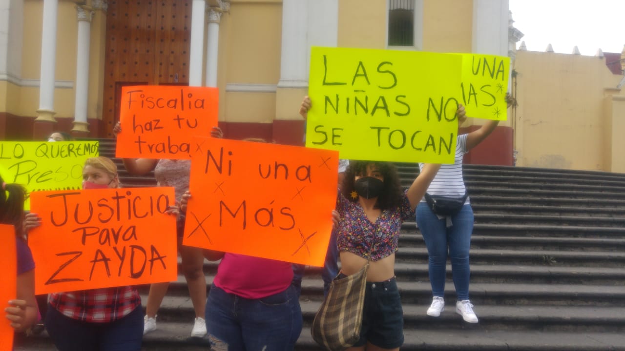 Familiares de una niña originaria de Rinconada, del municipio de Emiliano Zapata, con padecimiento de autismo se manifestaron esta tarde en las escalinatas de la catedral metropolitana, denunciaron que su tío intentó abusar de la menor.