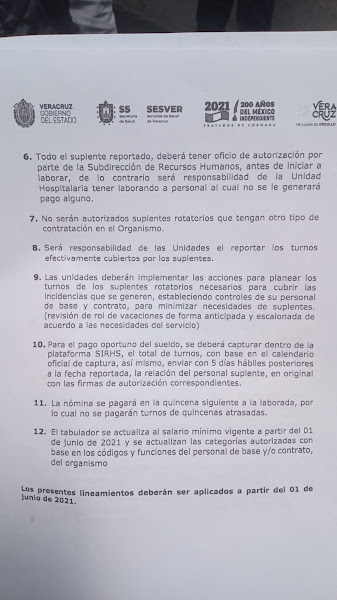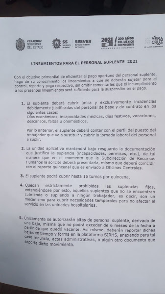 El oficio de los lineamientos habría sido circulando por los directivos del hospital y no por las oficinas centrales de SESVER, pero no tiene la firma de ningún titular ni ningún tipo de sello que lo avale, de la misma manera, indicaron que no están notificados oficialmente por ninguna jefatura, pero quieren que se les aclare.