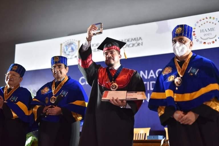 La Honorable Academia Mundial de la Educación entregó el título honorifico de Doctorado Honoris Causa al secretario de Educación de Veracruz, Zenyazen Roberto Escobar García, por sus méritos y trayectoria profesional en favor de la educación.
