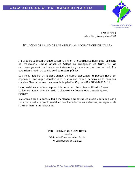 El monasterio de Corpus Christi de Xalapa permanecerá cerrado hasta que las religiosas contagiadas por el Covid-19 se recuperen.