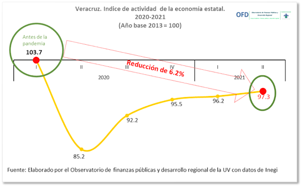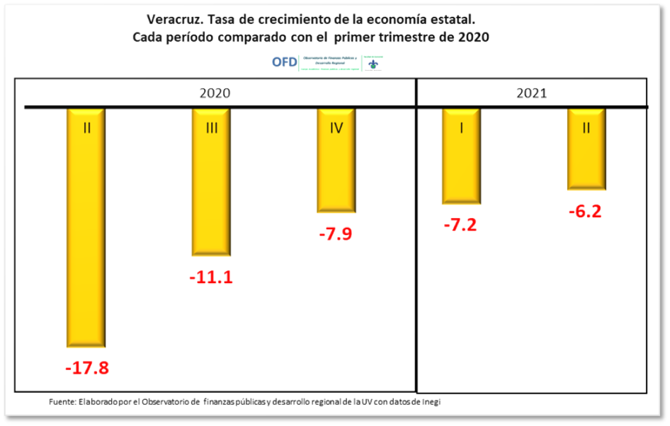 La economía veracruzana sigue mostrando una circunstancia adversa. Durante el segundo trimestre de 2021 pandemia (primer trimestre de 2020).