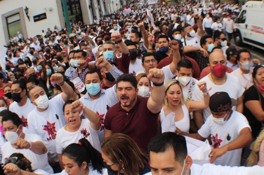 Impulsado por los mismos ideales de la 4a. Transformación, Zenyazen Escobar García asistió al mitin político en la Plaza Lerdo de la capital veracruzana a refrendar su apoyo para que el presidente de México, Andrés Manuel López Obrador, concluya su sexenio.