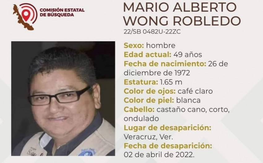 La Comisión Estatal para la Atención y Protección de los Periodistas informa que el comunicador *Mario Alberto Wong Robledo* fue localizado sano y salvo durante la madrugada de este martes.