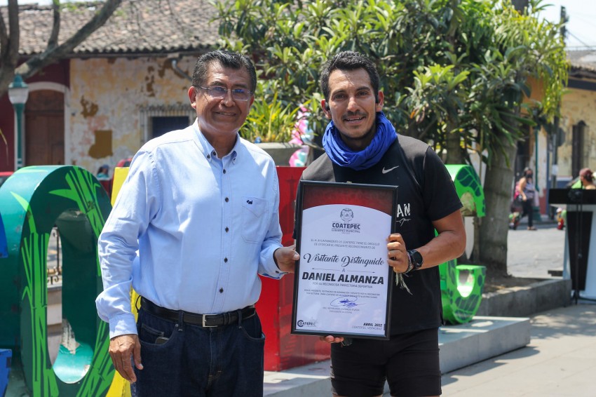 "Nuestro municipio tuvo la visita del ultramaratonista Daniel Almanza, quien está recorriendo el país de extremo a extremo, corriendo 60 kilómetros diarios, saliendo desde La Paz, Baja California, con destino final en Cancún, Quintana Roo; hoy en su día 80 de esta travesía estuvo en Coatepec en dónde lo reconocimos como Visitante Distinguido a nuestra ciudad" destacó el municipe.
