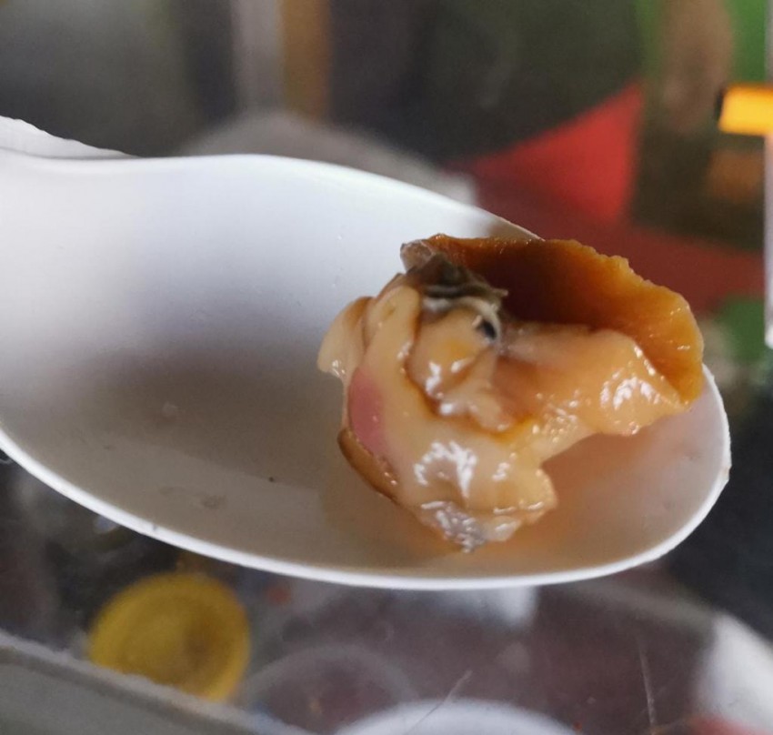 Tras su vitrina, en un puesto llamado: "La Sirenita", "Gabo" corta en trozos, (previamente cuece y quita su tinta), a este singular animal invertebrado, "Pomace Patula" (nombre científico), para después bañarlo en salsa dulce, con pedazos de cebolla morada, jitomate, chile habanero, y cilandro.