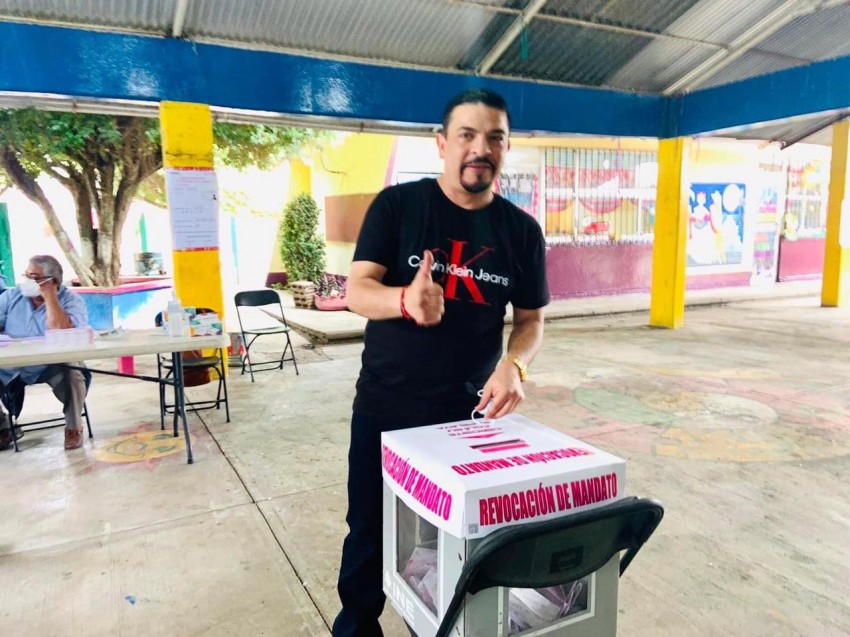 La mañana de este domingo, el diputado Juan Javier Gómez Cazarín ejerció su derecho de votar en esta Consulta Popular de Revocación de Mandato en la casilla instalada en la cabecera municipal de Hueyapan de Ocampo, donde saludó a decenas de ciudadanos que apostaron por fortalecer la democracia participativa y el derecho del pueblo a evaluar a sus gobernantes en turno.
