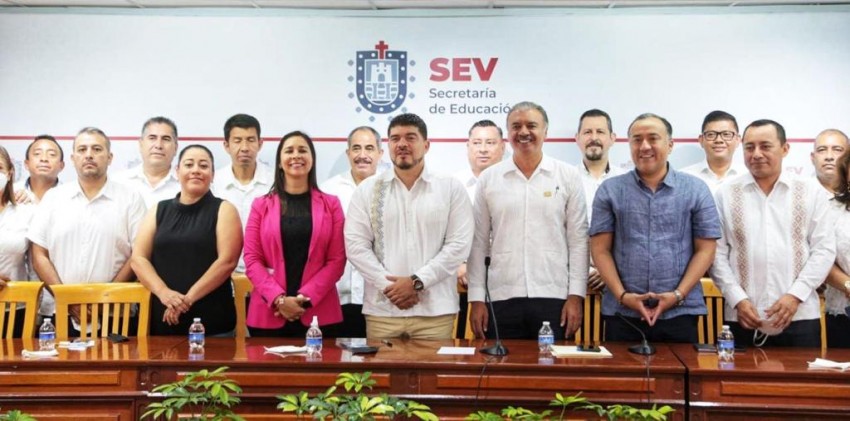 Acompañado por la Oficial Mayor de la Secretaría de Educación de Veracruz (SEV), Ariadna Selene Aguilar Amaya y los subsecretarios de Educación Básica, de Educación Media Superior y Superior y Desarrollo Educativo, Maritza Ramírez Aguilar, Jorge Miguel Uscanga Villalba y Moisés Pérez Domínguez, respectivamente, el titular del ramo educativo en la entidad afirmó que la actual administración pertenece al sector educativo y, por ende, nunca se atentará contra las bases trabajadoras.