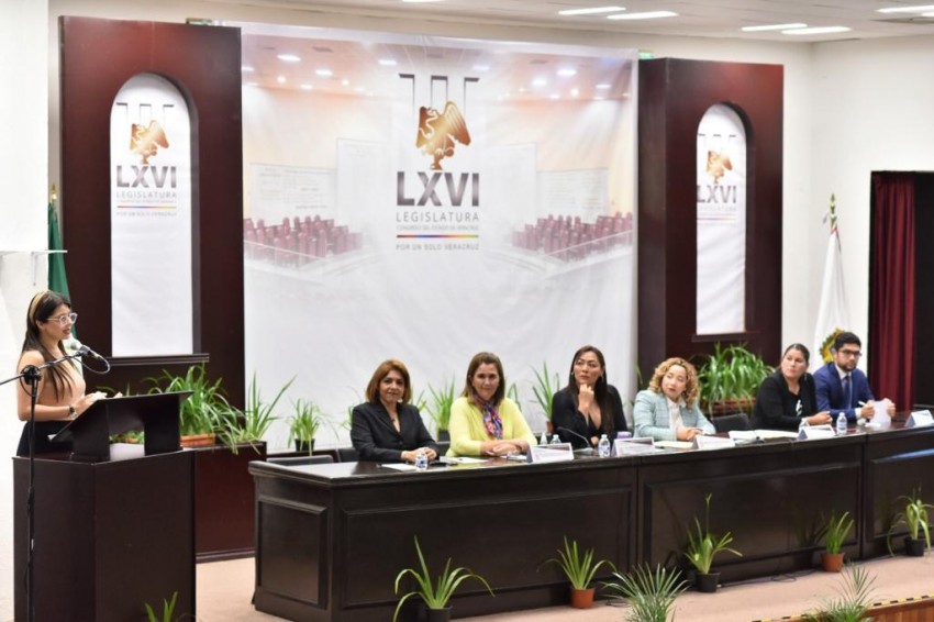 La legisladora recibió en el auditorio Sebastián Lerdo de Tejada del Palacio Legislativo a la titular de la Secretaría de Trabajo, Previsión Social y Productividad (STPSP) del Gobierno del Estado, Dorheny García Cayetano, y al director Jurídico de la misma dependencia, Víctor Luis Priego López; al lado de las diputadas Cecilia Guevara, presidenta de la Mesa Directiva de la LXVI Legislatura; Itzel López López, secretaria de la referida comisión; Lourdes Juárez Lara y Lidia Irma Mezhua Campos.