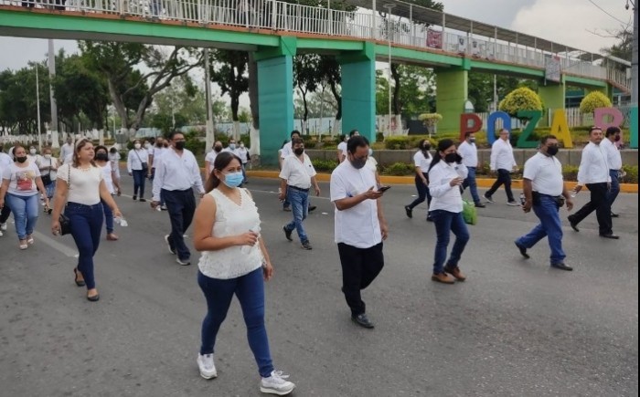 Más de 500 trabajadores marcharon en Poza Rica en el desfile conmemorativo por el día del trabajo en demanda de respeto a la autonomía de sus organizaciones sindicales.