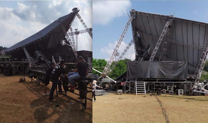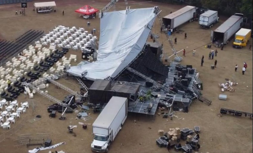 La tarde de este sábado colapsó la estructura del escenario donde se presentaría la cantante Gloria Trevi en el estadio de béisbol de la Universidad Veracruzana.
