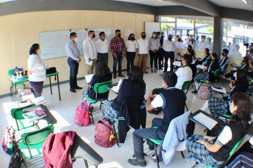 Para finalizar este viernes las visitas a escuelas de las Altas Montañas, realizó un recorrido por las instalaciones de la Escuela de Bachilleres América (EBA) del municipio de Ciudad Mendoza, donde saludó a un grupo de estudiantes y profesores del plantel.