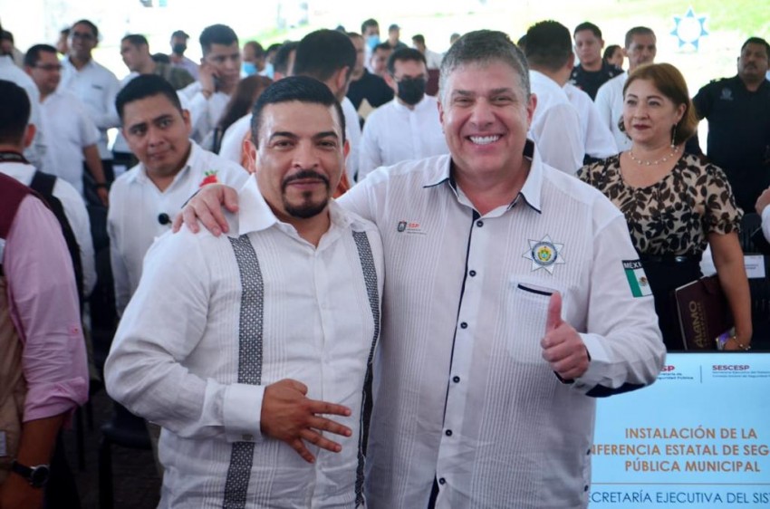 Felicitó al alcalde de Tuxpan, José Manuel Pozos Castro, por ser designado presidente de la Confederación Estatal de Seguridad Pública Municipal, a través de la cual se redoblarán las acciones desde lo local para cerrar el círculo contra la violencia.