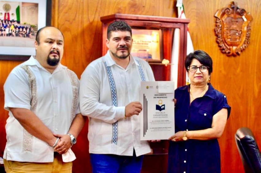 En su despacho, el secretario de Educación hizo entrega de la escritura a la directora e indicó que con este papel las escuelas pueden acceder a los programas públicos y así mejorar su infraestructura física y equipamiento, para que los estudiantes reciban educación de excelencia.