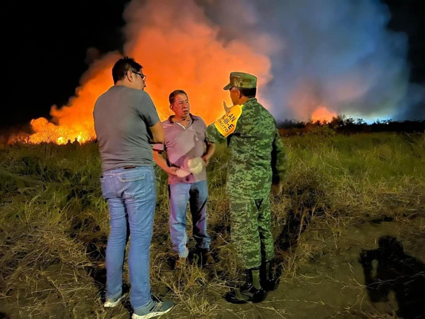 El alcalde José Manuel Pozos Castro y el General de Brigada D.E.M. Gaudencio García Rodríguez, comandante de la 19ª Zona Militar establecieron un puesto de mando junto a la empresa ITZOIL para coordinar las tareas de control del siniestro.