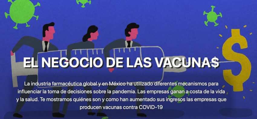 El micrositio al cual se puede acceder mediante este enlace https://poderlatam.org/el-negocio-de- las-vacunas/ busca transparentar y evidenciar los mecanismos por los cuales las grandes empresas farmacéuticas capturan la toma de decisiones sobre políticas de salud, anteponiendo sus ganancias por encima de los derechos humanos. En El negocio de las vacunas se comparte información disponible, normalmente en bases de datos privadas y en otros idiomas, sobre las empresas que se han enriquecido con la pandemia, sus ganancias en los últimos años, y las y los beneficiarios reales de las mismas.