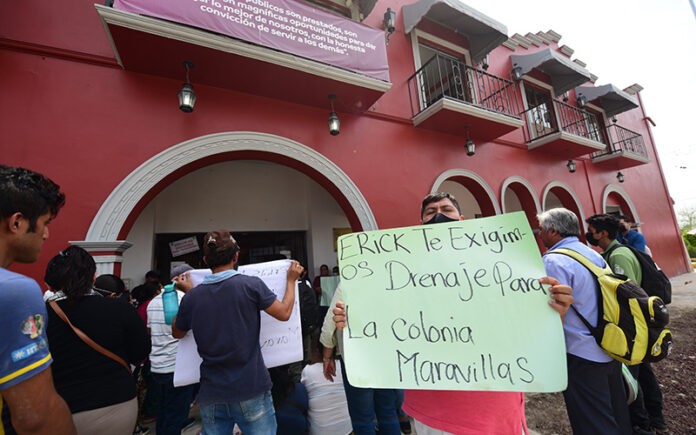 Desde hace varios días, un grupo de colonos del fraccionamiento "Maravillas" se han manifestado en el palacio municipal de Emiliano Zapata para exigir la construcción de un drenaje.