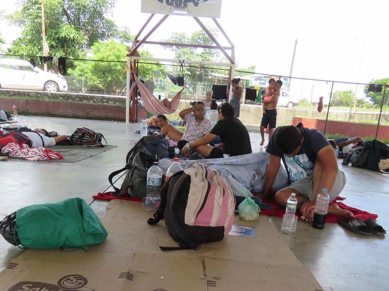 Estamos esperando el autobús”, dijo Melissa, al tiempo de señalar que viaja ella y otros amigos y su bebe de 6 meses de edad. El grupo se encuentra en la zona de la curva donde grupos religiosos llegan a atenderlos y juegan con los niños, en tanto el resto espera para continuar su camino hacia el norte de la república.