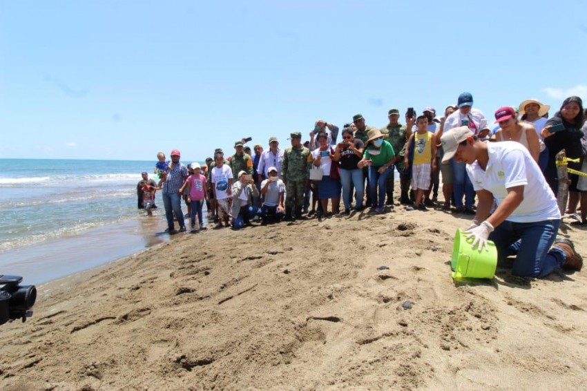 Es la eclosión del primer nido con un total de 78 huevos, de ellas solo 17 nacieron y lograron reintegrarse, de esta manera se continua con los trabajos de conservación en el campo tortuguero y en la zona de los tuxtlas que recibe a las cinco especies de tortugas que arriban a desovar.