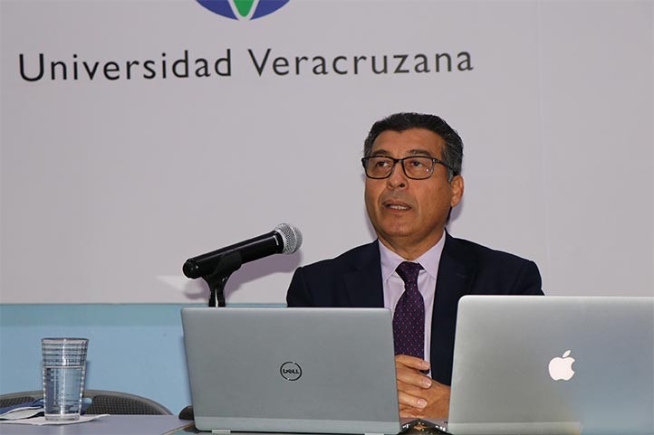 El jurista impartió la ponencia “Las brechas entre países y el cambio climático”, el pasado 21 de junio, en el marco de la Escuela Internacional de Verano de la Universidad Veracruzana (ISSUV) que en esta edición llevó por título “El cambio climático ¡está aquí!”, desarrollada del 20 al 24 de este mes en la Unidad de Servicios Bibliotecarios y de Información (USBI), por iniciativa de la Dirección General de Relaciones Internacionales de esta casa de estudios.