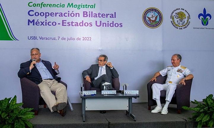 Por su parte, el Almirante Ojeda Durán expresó que “estar aquí en la Universidad Veracruzana, para los oriundos de esta entidad, representa mucho y agradezco a su Rector todas las atenciones y el espacio para llevar a cabo el encuentro en esta noble institución”.