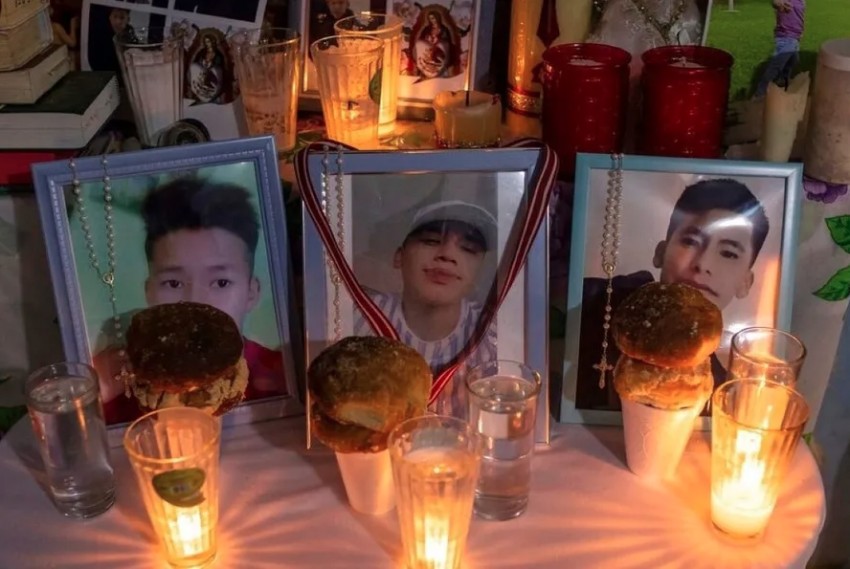 Los cuerpos de los hermanos Jair y Yovani Valencia Olivares, de 19 y 16 años; y de su primo Misael Olivares, también de 16; llegaron al pueblo zapatero en dos carrozas fúnebres, luego de que los pobladores y familiares de las víctimas juntaron donativos para realizar el funeral.