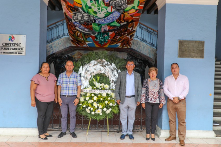 El alcalde Raymundo Andrade Rivera acompañado de ediles llevaron a cabo en bajos del palacio municipal la guardia de honor en conmemoración del 150 Aniversario Luctuoso de Benito Juárez.