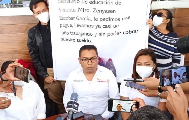 Trabajadores de la Sección 56 del Sindicato Nacional de Trabajadores de la Educación (SNTE) denunciaron en conferencia de prensa que la Secretaria de Educación de Veracruz (SEV) no les paga desde hace diez meses su salario., solicitaron la intervención del gobernador Cuitláhuac García Jiménez ante el titular de la dependencia Zenyazen Roberto Escobar García, a fin de hacer efectivo estos adeudos a trabajadores de apoyo y asistencia a la educación.