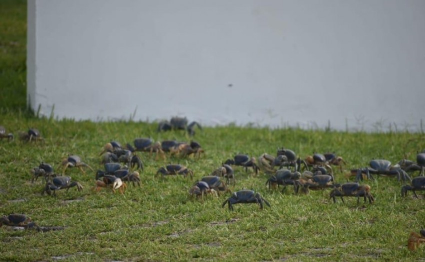 Como cada año, en temporada de lluvias, miles de hembras de cangrejos azules buscan la vereda marcada por la luna llena para llegar al mar, desde los manglares, hoy rodeados de cientos de casas residenciales de los complejos en la denominada Riviera Veracruzana.