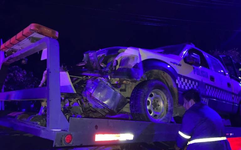 De acuerdo con elementos de tránsito que atendieron el siniestro, el conductor de la patrulla perdió el control y se estrelló contra un muro de concreto, quedando destruida de la parte delantera.