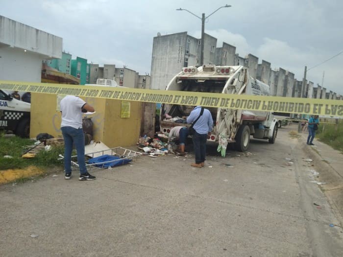 Los hechos ocurrieron cuando el personal de limpia pública vaciaba el contenedor con residuos en el circuito orquídeas esquina con avenida bugambilias.