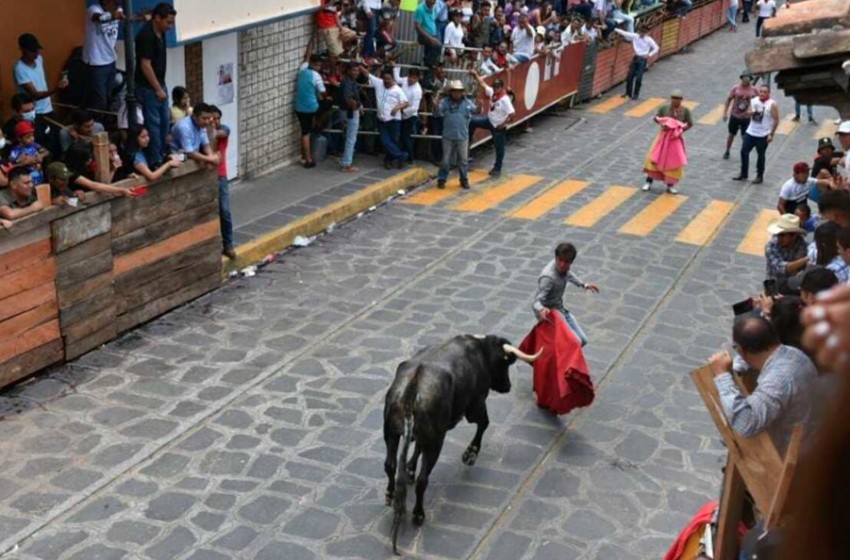 En el marco de las fiestas patronales en honor a Santa María Magdalena, en Xico, Veracruz, se realizó la tradicional capea de toros por la calle principal de este pueblo mágico.