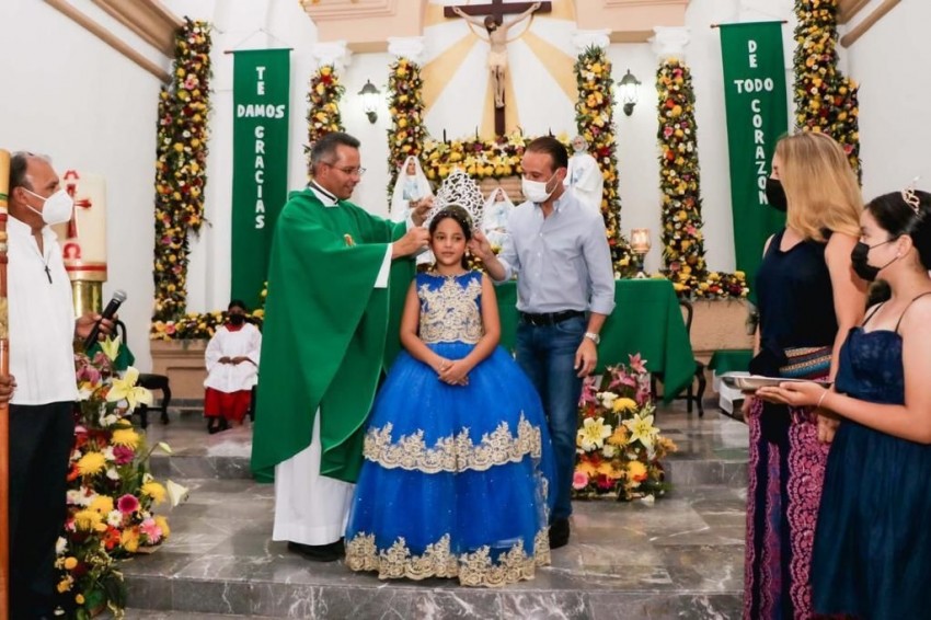 De la mano del Alcalde de Boca del Río, Juan Manuel Unánue Abascal y del Párroco de la iglesia Nuestra Señora de Santa Ana en Boca del Río, Cecilio Herrera Moreno, coronaron a la pequeña Nathalia Fernández Rojas Meléndez, quien es ya, oficialmente, la Florecita del Mar 2022.