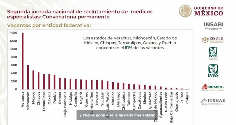 Zoé Robledo indicó que más del 51 por ciento de estas vacantes se concentran en siete estados, esto porque se le ha dado prioridad a las plazas de difícil cobertura.