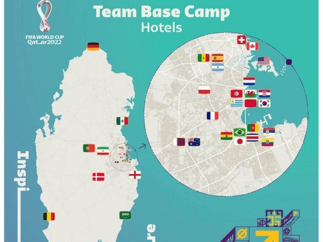 Tres cuartas partes de las selecciones que jugarán el Mundial de Qatar estarán dentro de un radio de 10 kilómetros entre sí, dijo la FIFA, que anunció los hoteles y lugares de entrenamiento de los 32 equipos nacionales, donde la selección de México está fuera de ese perímetro.