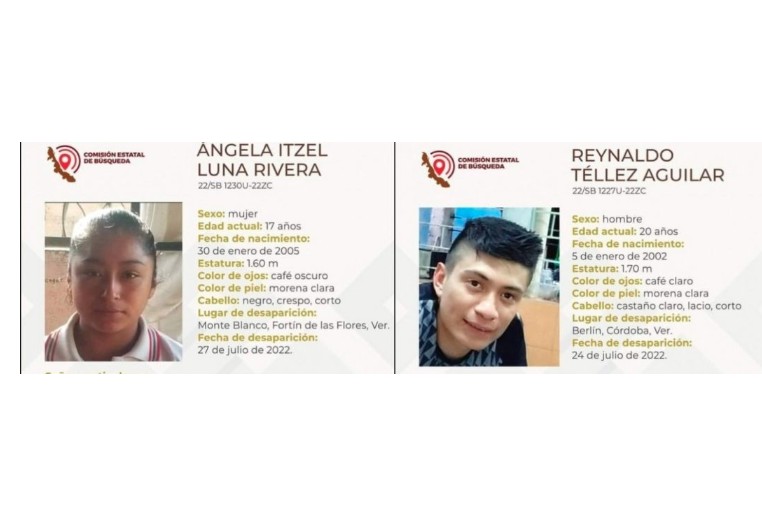 Tres jóvenes; dos hombres de 18 y 20 de Mendoza y Córdoba, así como una menor de 17 de Fortín, han sido reportados como desaparecidos por la Comisión Estatal de Búsqueda de Veracruz, debido a que perdieron comunicación desde el 24 al 28 de julio del presente.