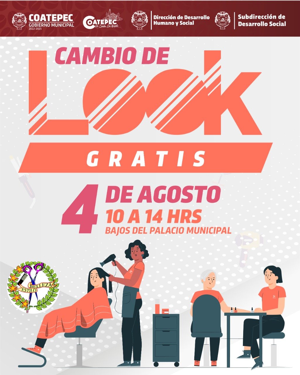 El H. Ayuntamiento de Coatepec a través de la Subdirección de Desarrollo Social en coordinación con el Instituto de Estilistas de Belleza invitan a la población a realizarse corte de cabello (dama y caballero), planchado y perfilado de ceja, planchado de cabello y polish, que estarán disponibles el jueves 4 de agosto en horario de 10 a 14 hrs en bajos del palacio municipal.