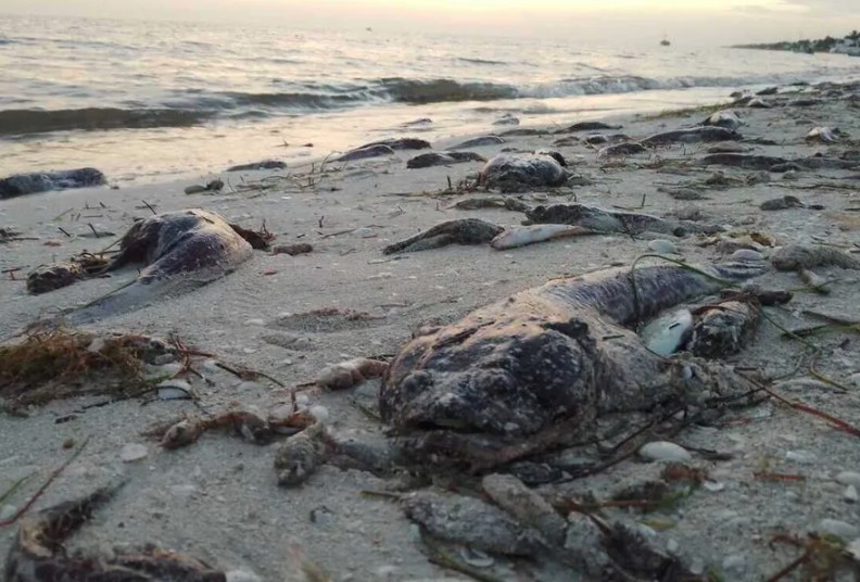 Miles de especies marinas fueron encontradas muertas en la costa de Telchac Puerto, poblado de Yucatán; los animales recalaron en la playa por la marea roja.