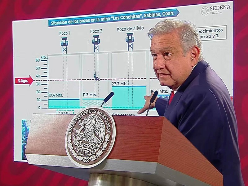 En conferencia en Palacio Nacional, el mandatario destacó el avance que se tiene en el bombeo de agua para que los cuerpos de apoyo puedan ingresar a la mina y salvar a los trabajadores atrapados.
