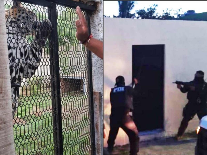 Finalmente, en un predio de la colonia irregular Las Fincas, se cumplimentó el tercer mandato judicial y se aseguraron: dos chalecos tácticos, documentos, así como 19 bolsitas con sustancias prohibidas por la ley, cuyas características son similares a la mariguana. En ese mismo lugar, también se tomó registro del hallazgo de un jaguar y una leona, los cuales fueron dejados en sus jaulas y se hizo del conocimiento de la Procuraduría Federal de Protección al Ambiente (PROFEPA), a fin de que se garantice el debido cuidado y manipulación de los felinos.