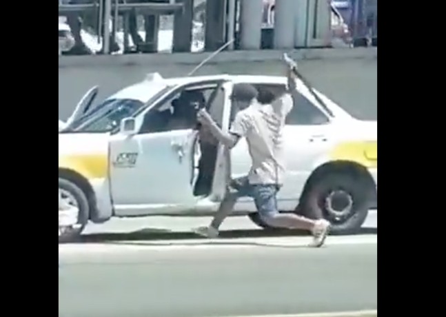 Las imágenes son virales en las redes sociales al mostrar al sujeto atacando a media calle al conductor del taxi.