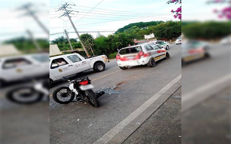Una motociclista resultó herida tras chocar por alcance contra un taxi en el tramo carretero Coatepec-Las Trancas, a la altura de la desviación al poblado Mahuixtlán, de ese municipio.