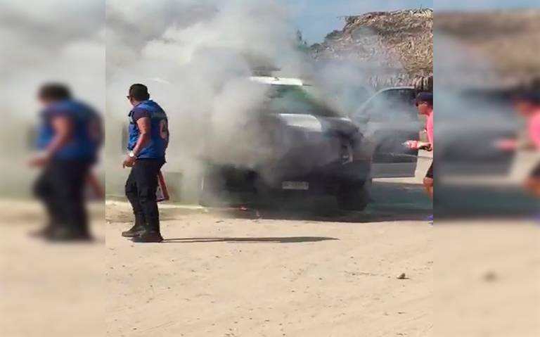 Una patrulla de la Policía Municipal se incendió en la zona de playas de esta cabecera municipal; no se reportaron heridos, de acuerdo con testigos.